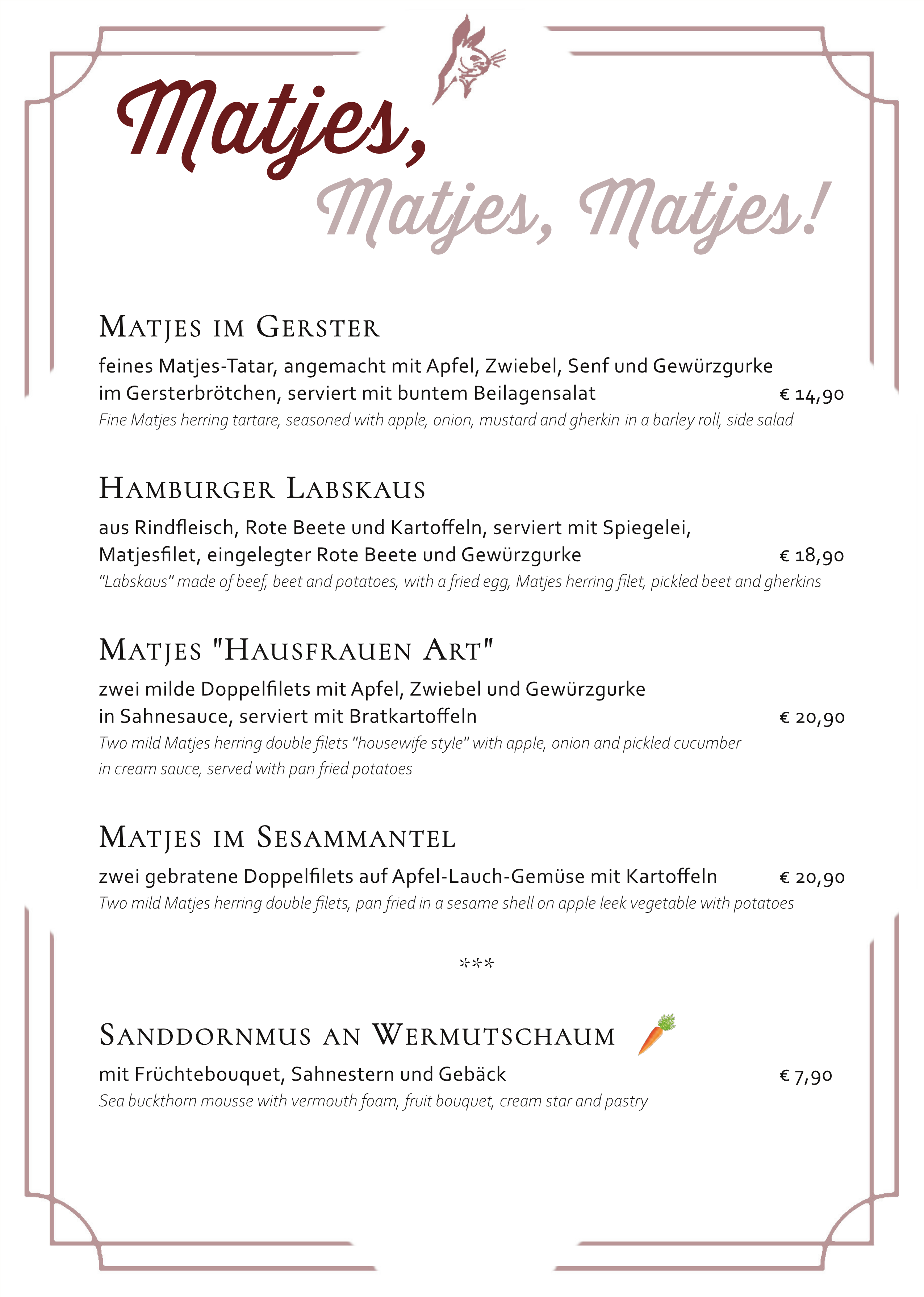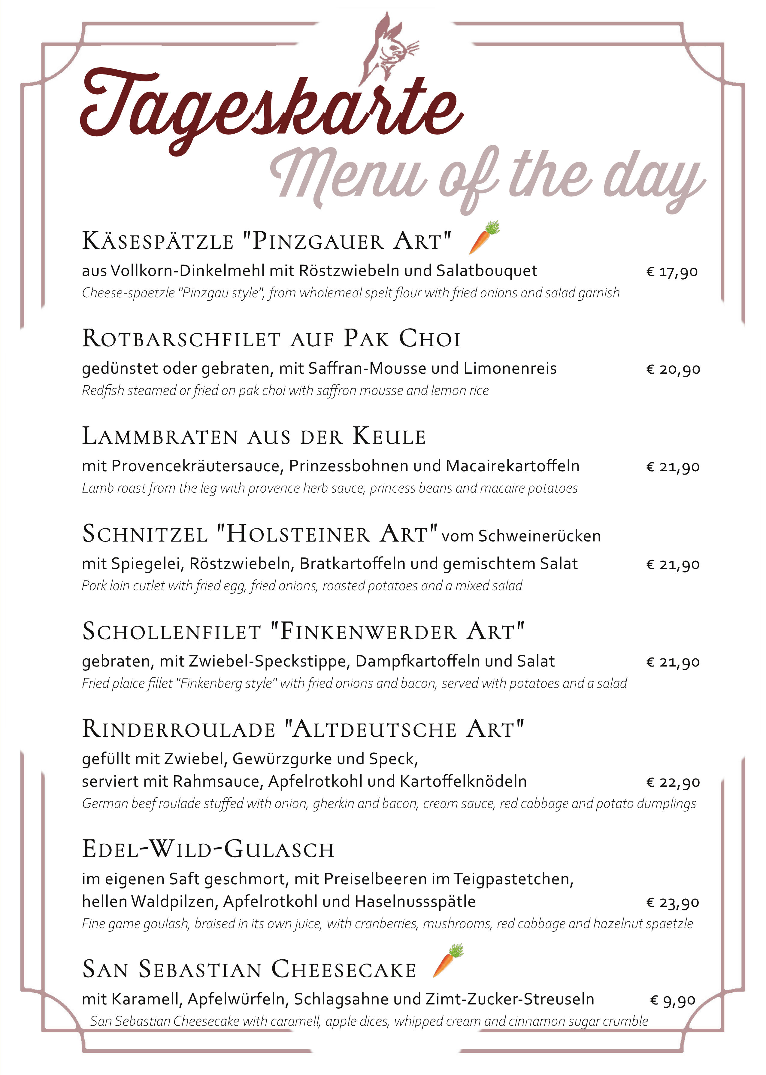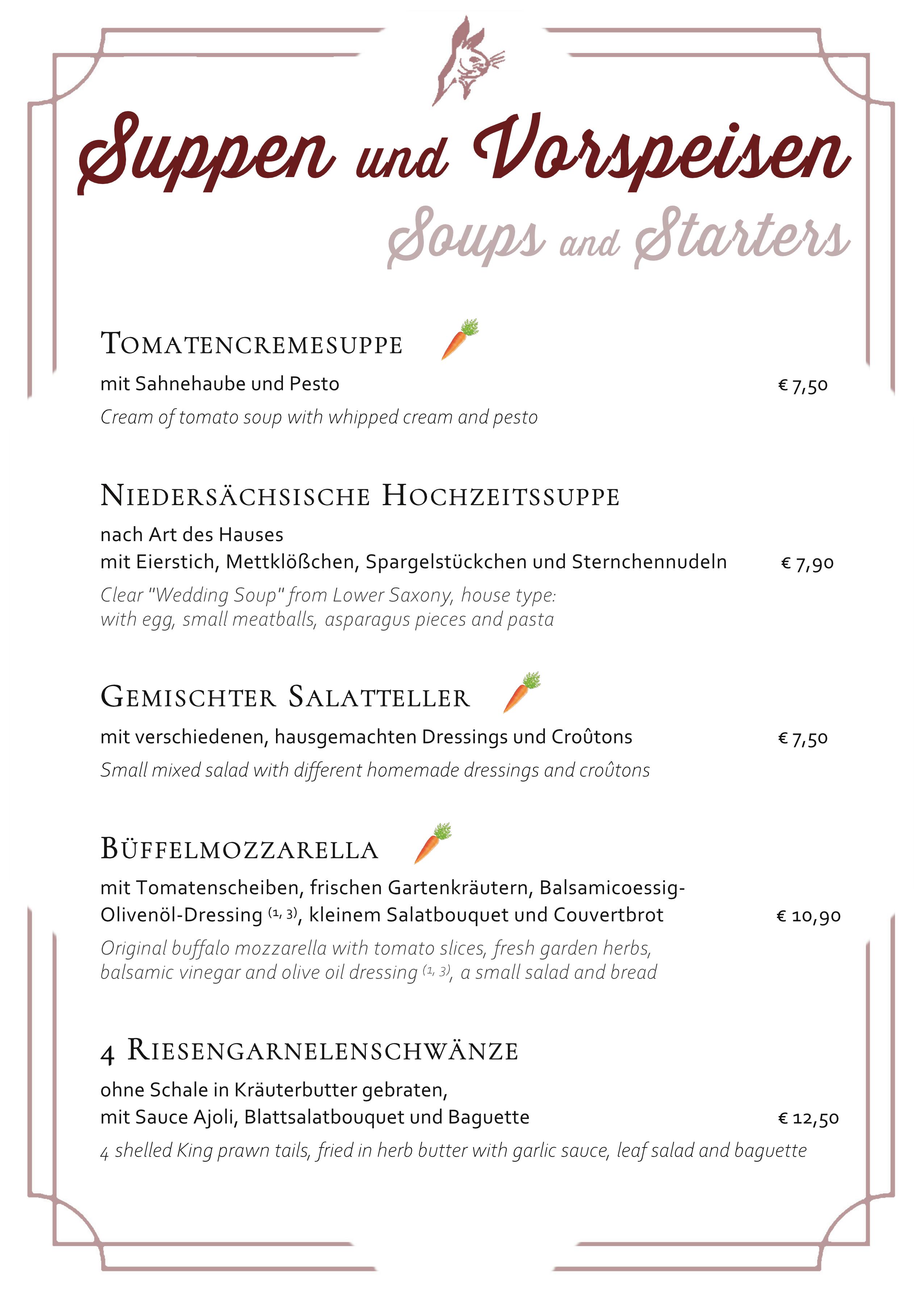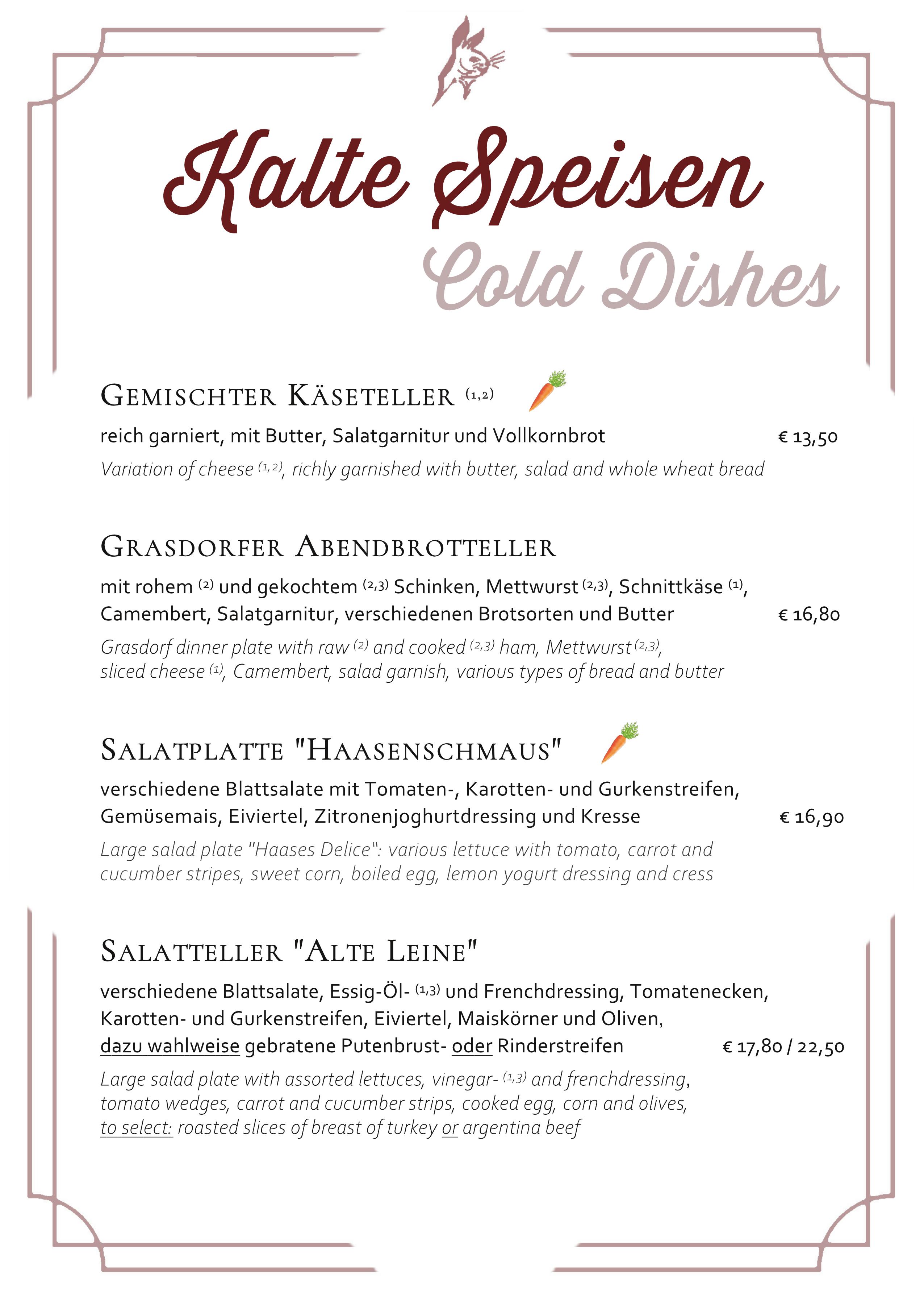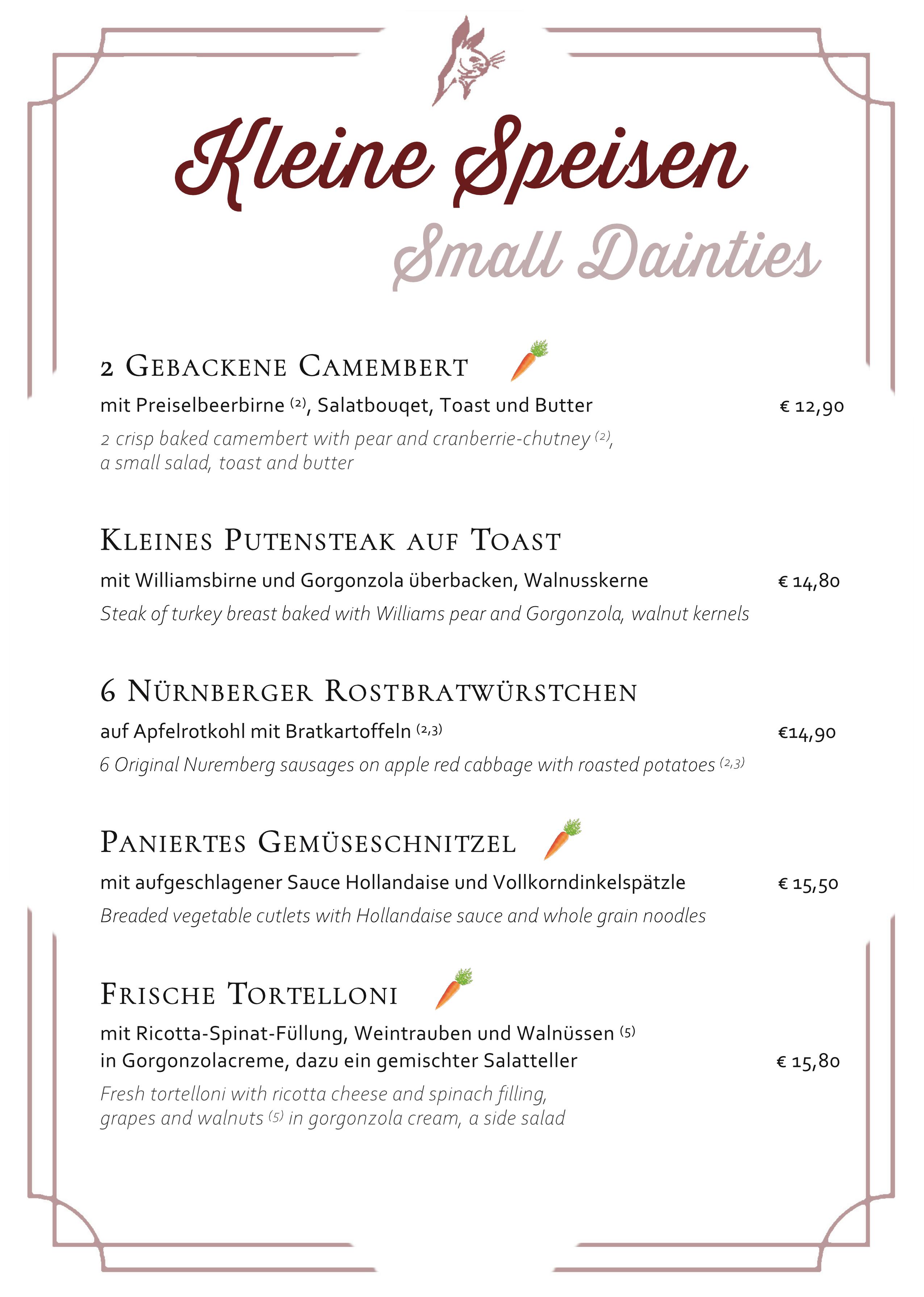 Reguläre Speisekarte – regular menu
