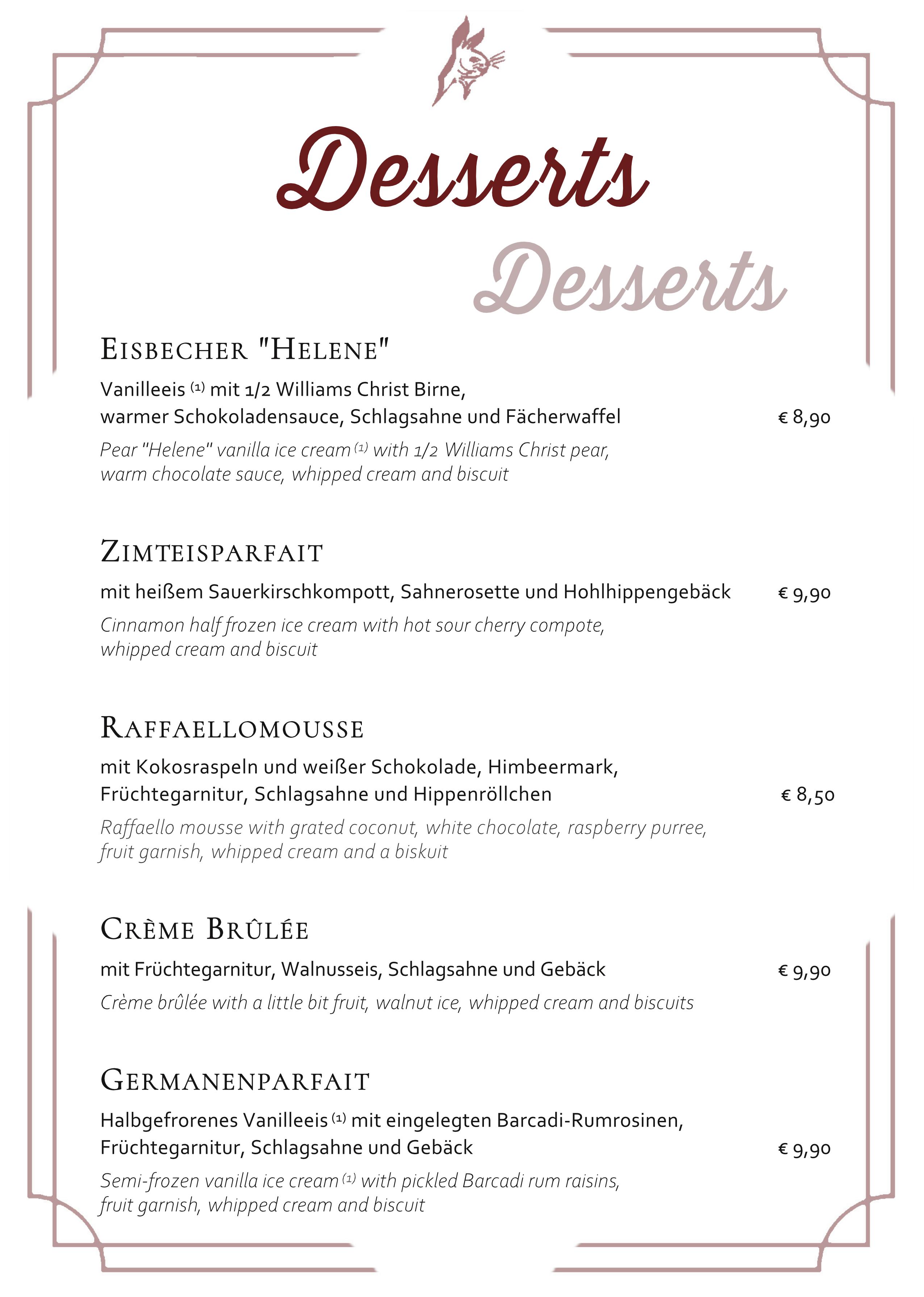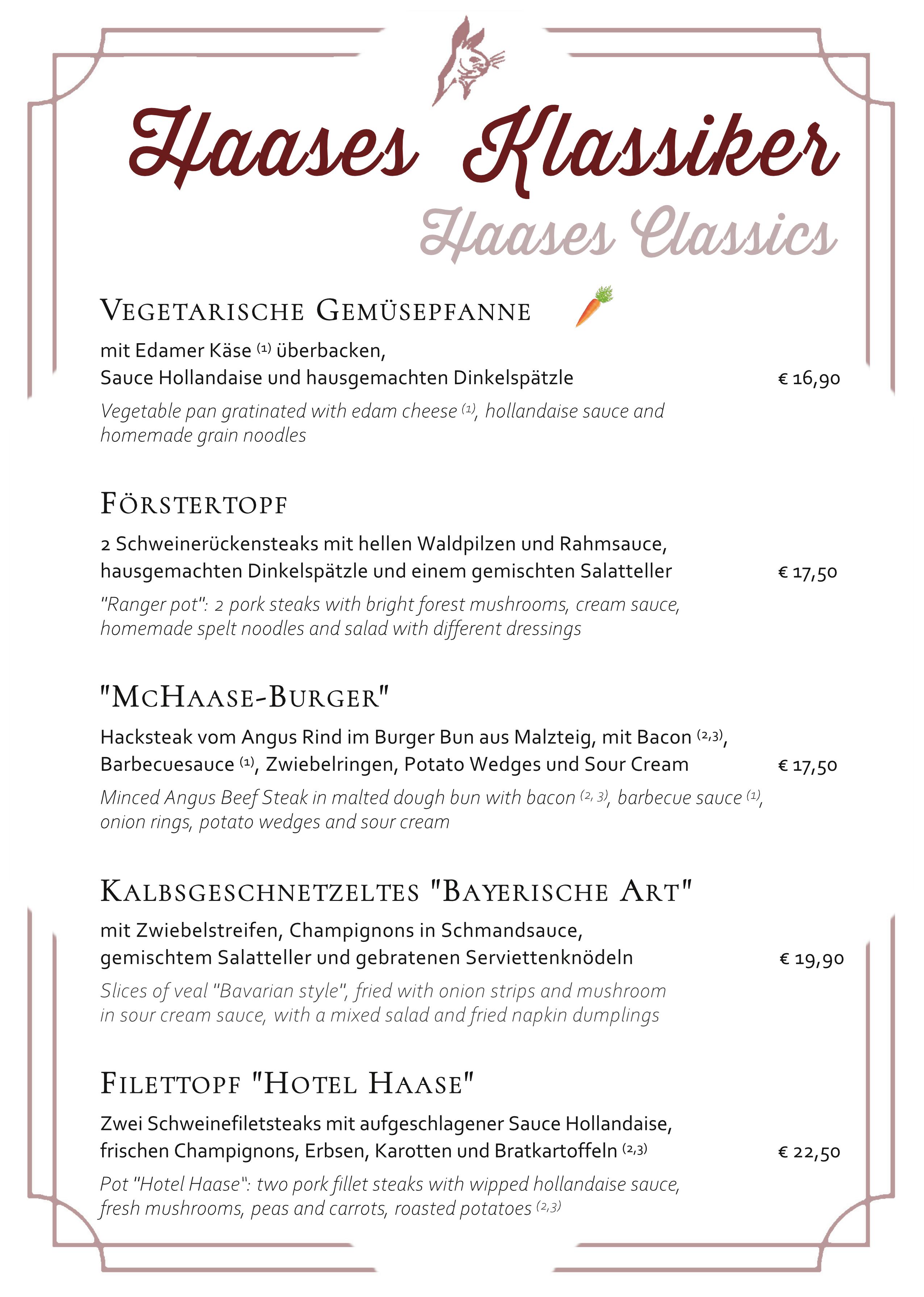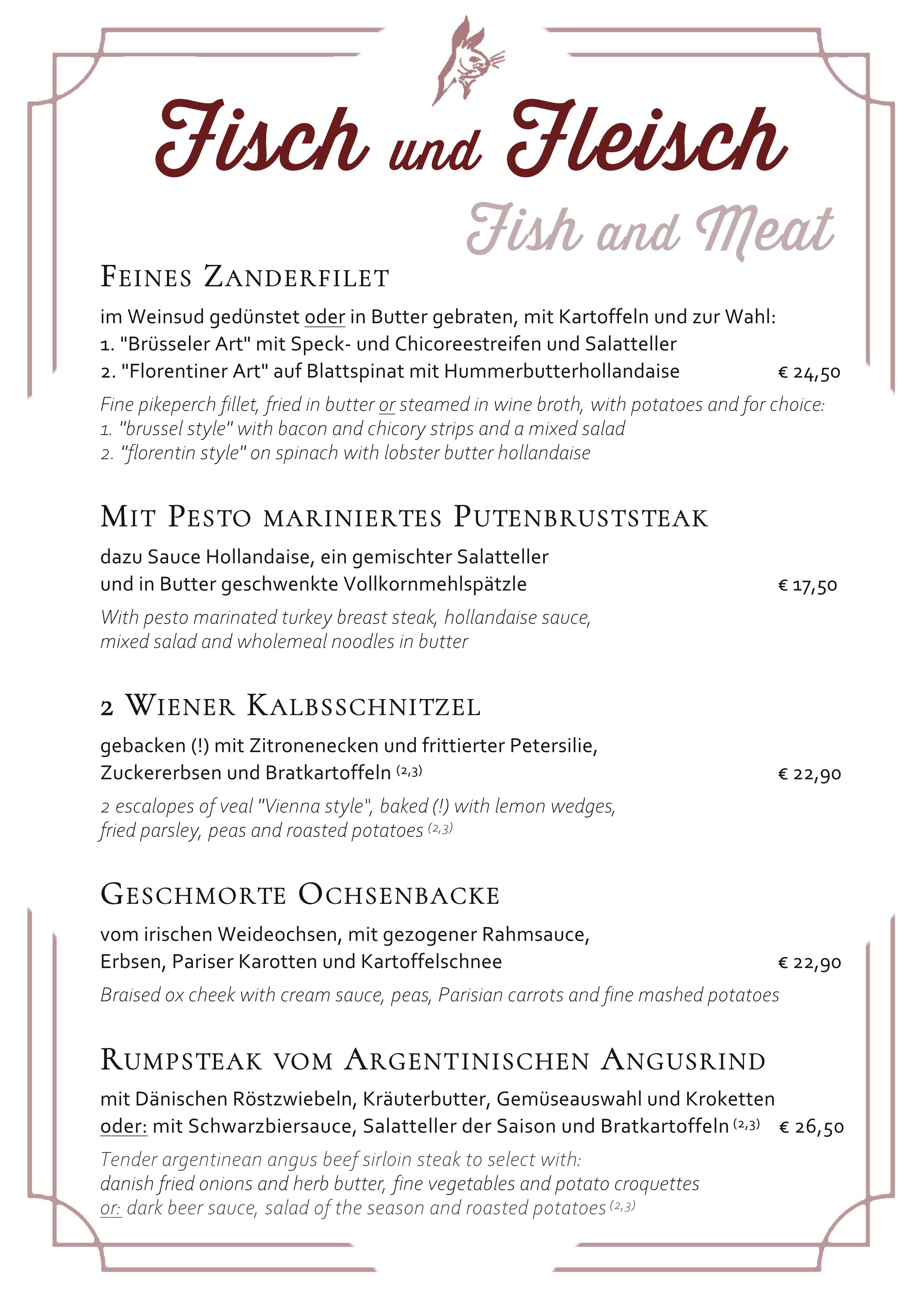 Reguläre Speisekarte (ohne Tages-/Saisonkarte) als Download (PDF).